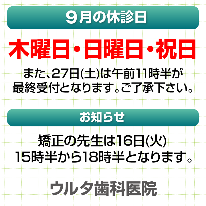 9月休診日情報